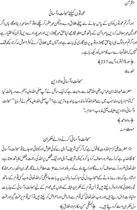 عورتوں کے لیے سہولت و آسانی