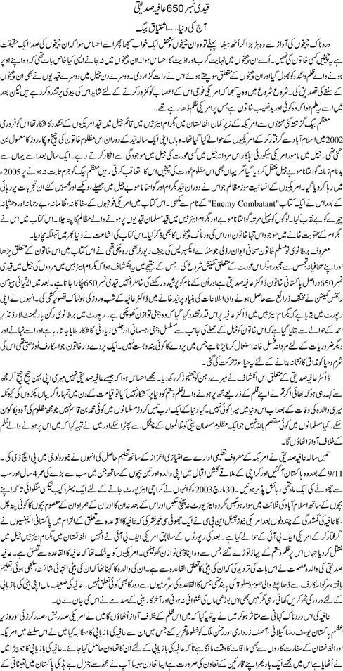 قیدی نمبر 650 عافیہ صدیقی