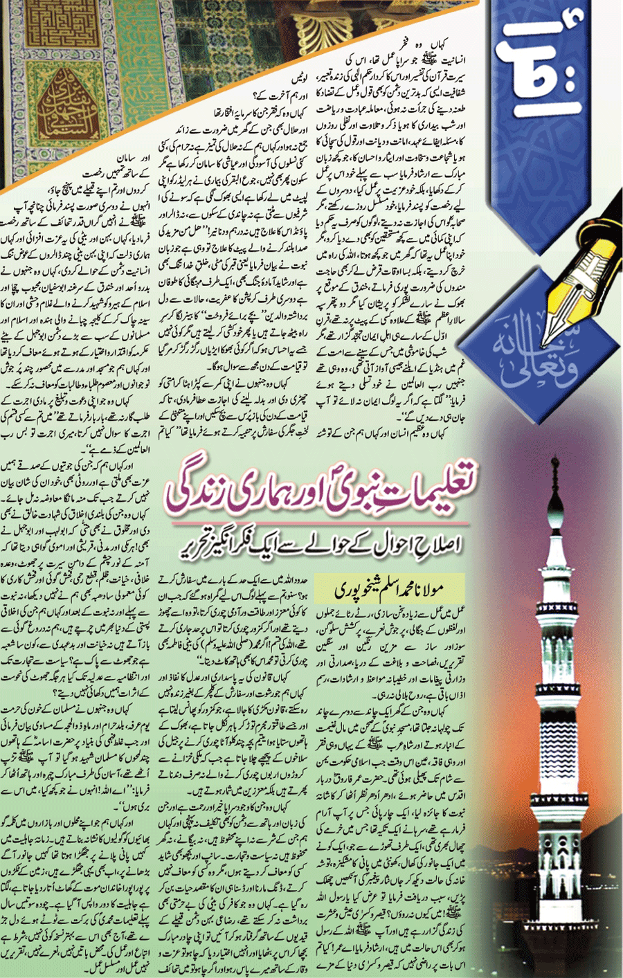 تعلیمات نبوی اور ہماری زندگی - تحریر مولانا محمد اسلم شیخوپوری