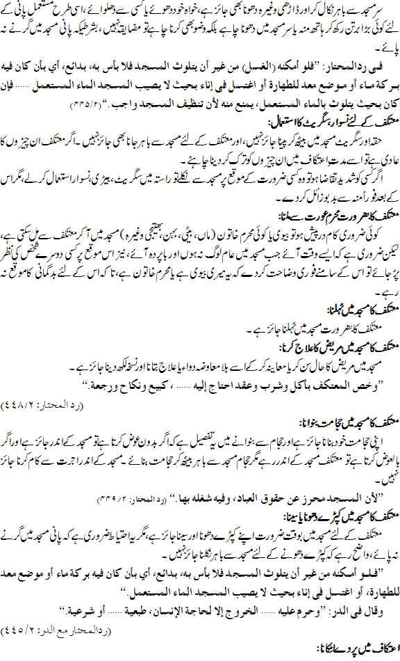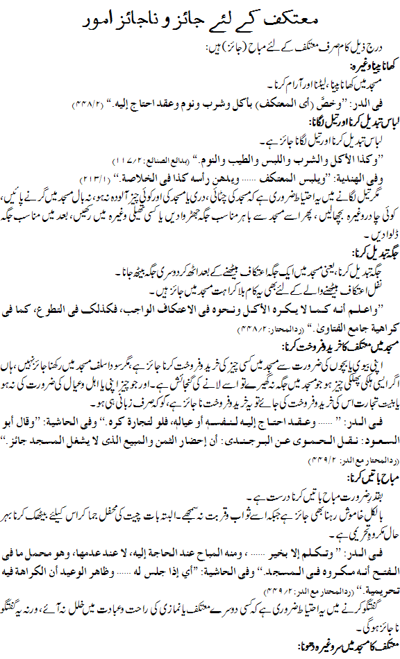 معتکف کے لیے جائز اور نا جائز امور