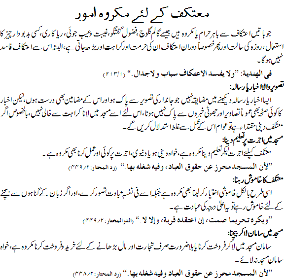 معتکف کے لیے مکروہ امور